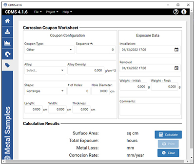 | Metal Samples Corrosion Data Management Software (CDMS) is a collection of utilities designed to assist the corrosion specialist in gathering and analyzing corrosion data from Metal Samples probes, instruments, and coupons. It includes a Data Transfer center, a Data Analysis utility, an LPR Alloy Multiplier Worksheet, and a Corrosion Coupon Worksheet. |