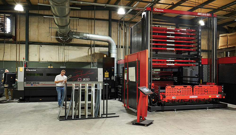 It is integrated with an automated sheet loading tower system, which allows for faster turnaround on large production runs. |